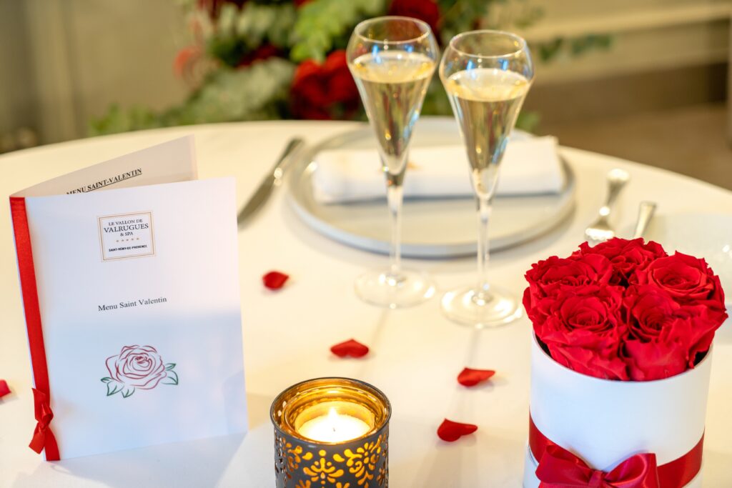 Déjeuner ou dîner pour fêter la Saint Valentin dans le restaurant Gastronomique du Vallon de Valrugues à Saint-Rémy-de-Provence au cœur des Alpilles proche des Baux-de-Provence.