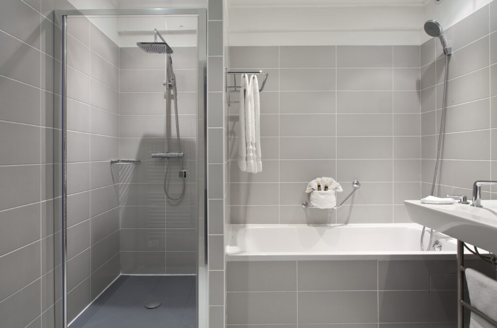 Dans la salle de bains : produits d'accueil, sèche-cheveux