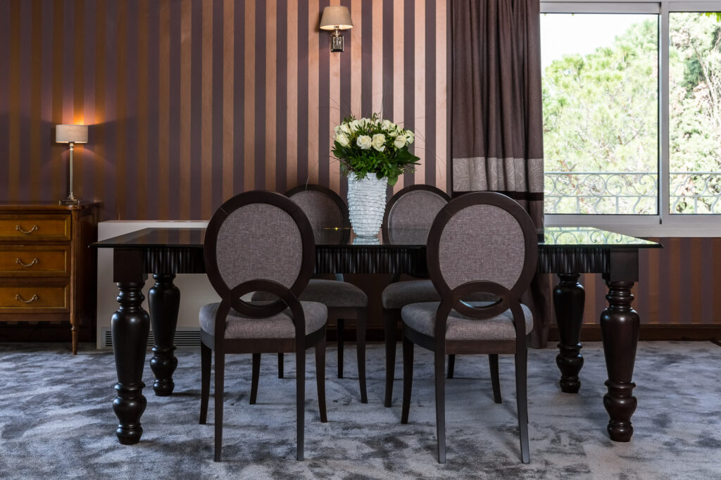 Chambre double principale avec une chambre enfants double séparée, grand dressing, salon séparé avec cheminée, salle à manger, 3 TV.