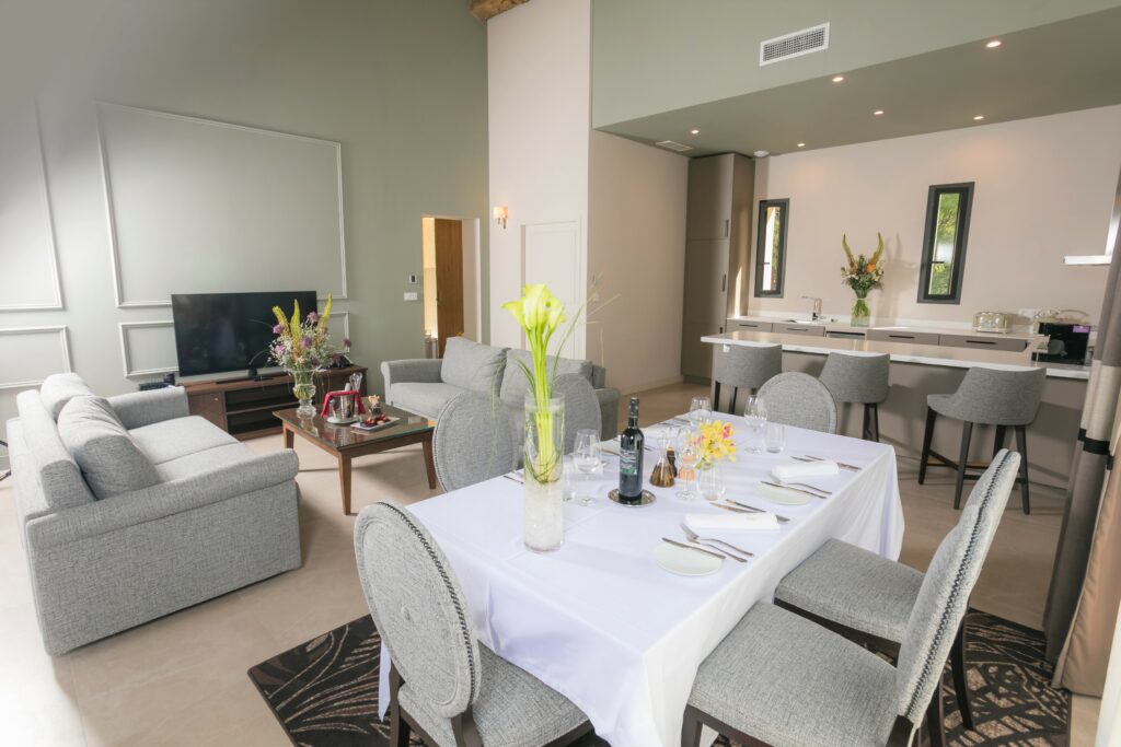 Nuit et jour, depuis une cuisine dédiée, l’équipe du room service est à votre disposition en chambre ou en Villa.