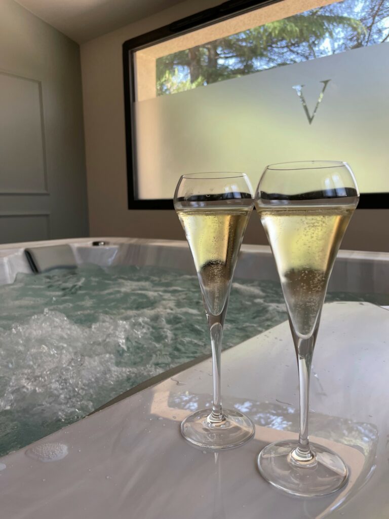 Idée de cadeau romantique au Spa du Vallon de Valrugues en Provence combine pour vous, massage en couple, jacuzzi, hammam, intimité et luxe à Saint Rémy de Provence dans les Bouches-du-Rhône.